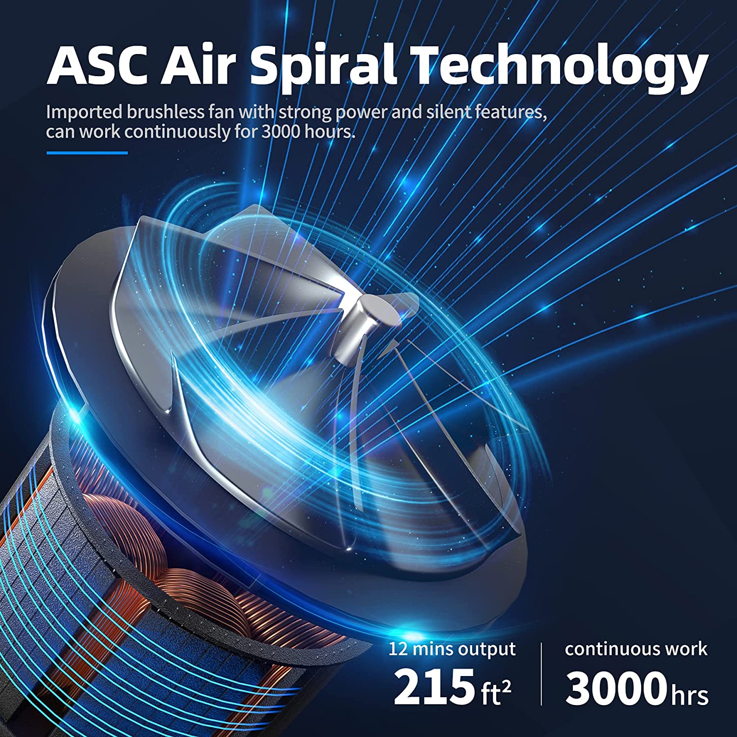 - 【High Circulation Rate】: The purifier uses advanced air spiral technology and 360-degree inlets, which allows it to refresh the air per hour in spaces up to 215 sq ft/20 sq m and you can experience a 25% increase in purification efficiency.